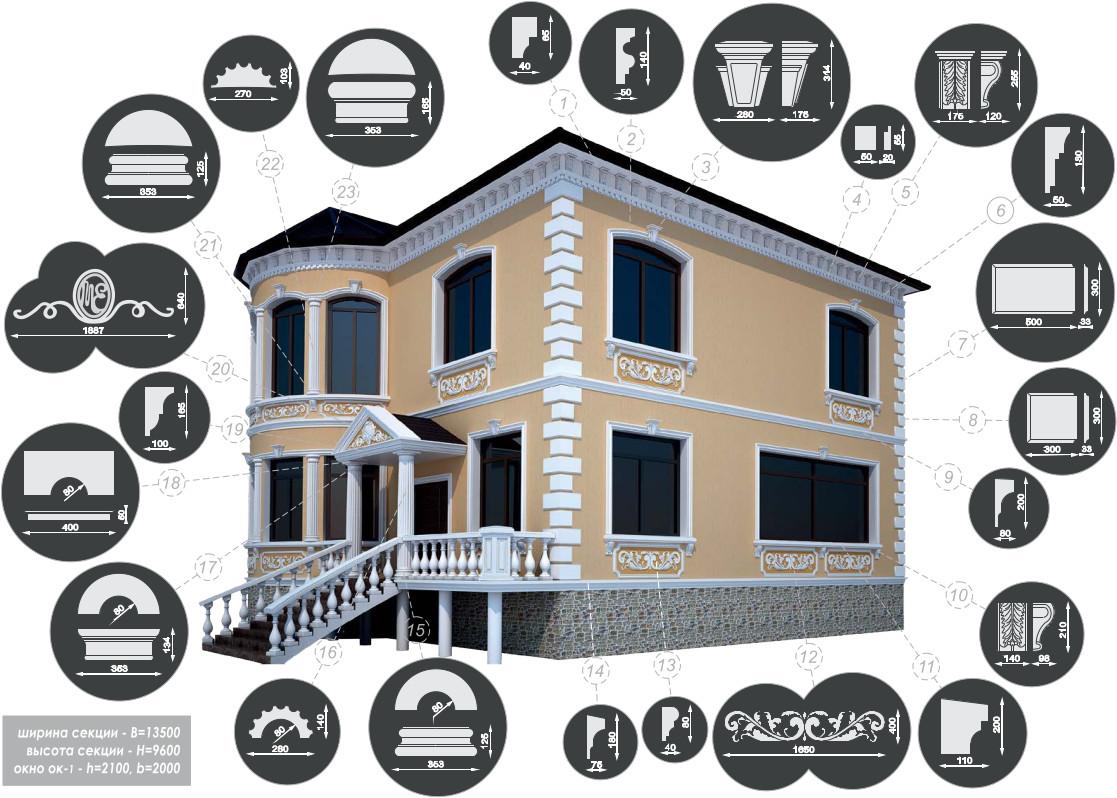 Для строительных организаций и бригад мы готовы предложить бесплатный подбот фасадного декора под имеющийся у Вас проект и подготовку расчета стоимости.